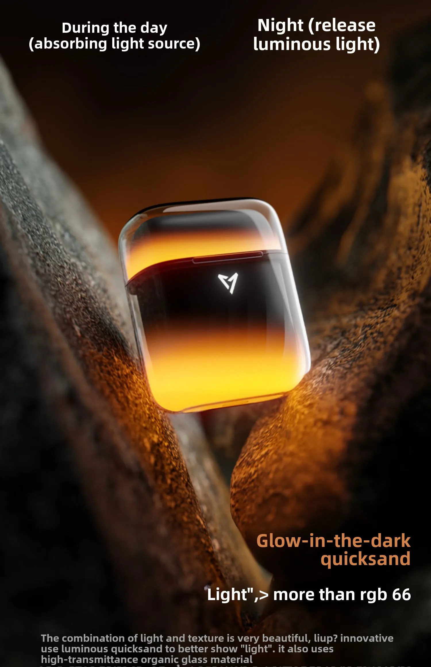 ✅ Luminiscenční quicksand design – originální svítící efekt při absorpci světla
