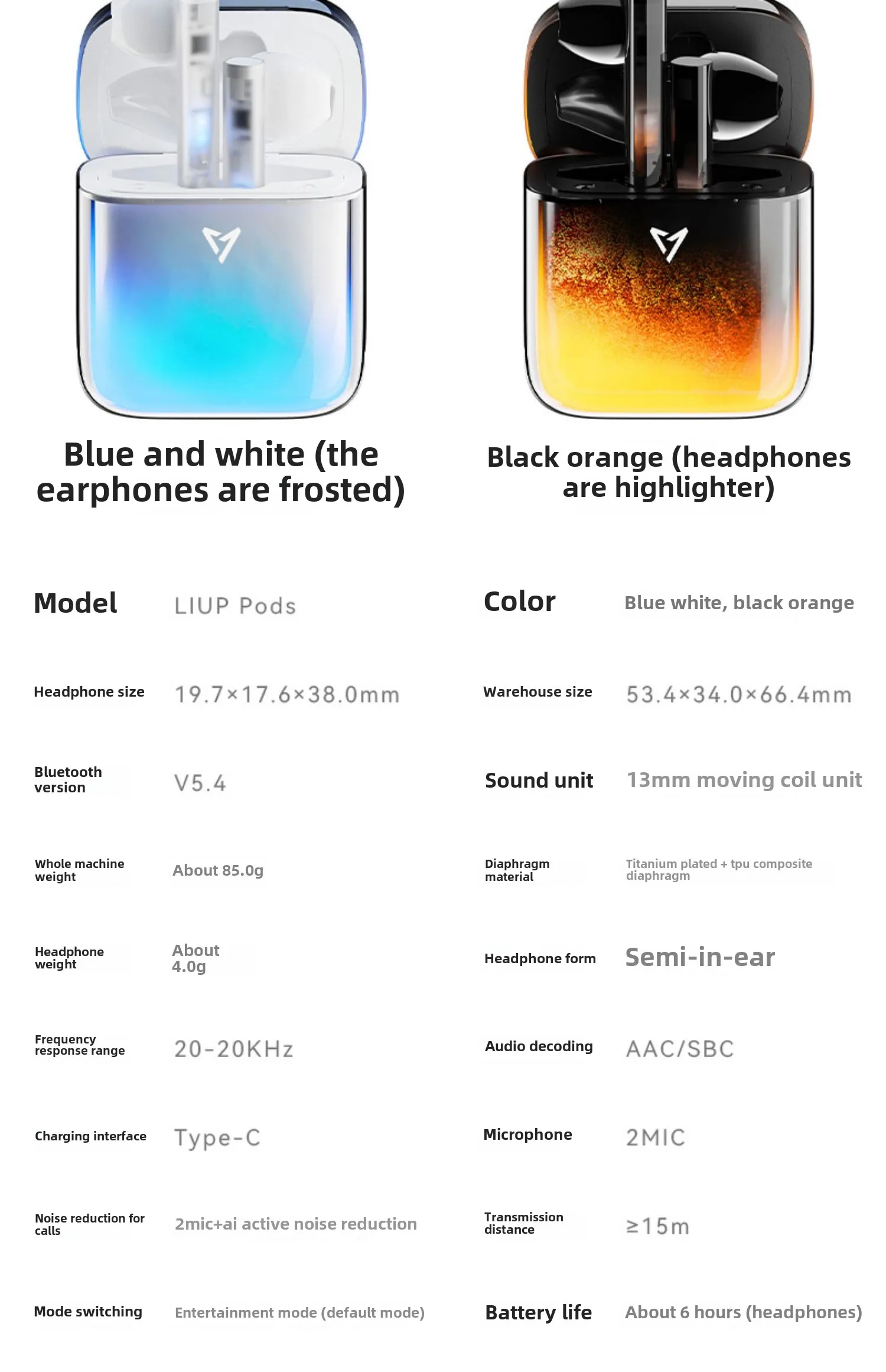 1× LIUP-Pods Bluetooth sluchátka